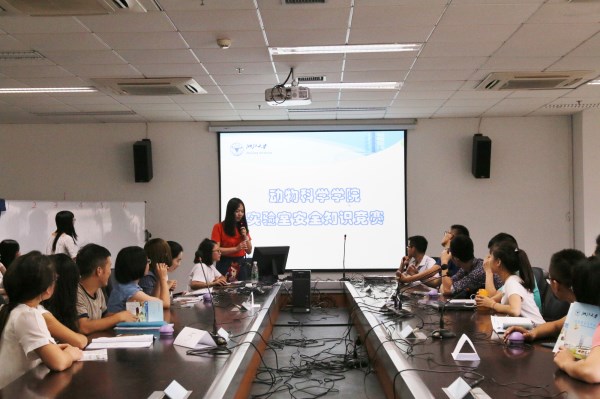 9月25日下午,学院在二楼报告厅举行研究生新生实验室安全知识竞赛。竞赛分为三个环节,必答题环节、抢答题环节和观众抢答环节。必答环节中,试题多是实验室操作基本规范,同学们掌握良好。抢答题环节中,看图找错题素材来源于学院各个实验室不规范操作的反例,同学们眼光独到,找出配电箱、安全通道被阻挡,废液没有贴标签及时处理,电线裸露,饲养实验动物等诸多问题,在寻找安全漏洞的同时也是强化安全意识、加深安全知识记忆的过程。江丽军逐一点评并告诫同学们必须严格按照实验室操作规范进行实验,防患于未然。最终2016级兽医硕士班取得一等奖,2016级博士1班和博士2班取得二等奖,2016级饲料所硕士班、2016级动科硕士班以及2016级特动硕士班取得三等奖。