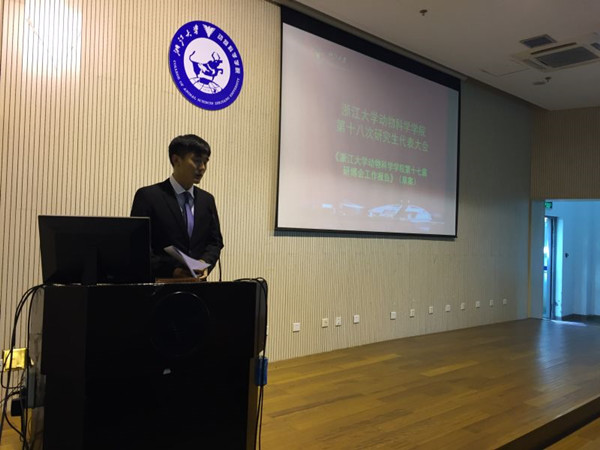 10月9下午,学院第十八次研究生代表大会在学院一楼报告厅顺利召开,学院党委书记潘炳龙,团委书记陈卫、研究生辅导员江丽军,浙江大学研究生会生会主席程东、浙江大学博士生会副主席温舒婧以及来自紫金港校区各兄弟院系研博会主席出席了大会。来自学院各个班级的105名研究生代表参加了本次大会。此次大会由学院2015级研究生马晓丹主持。