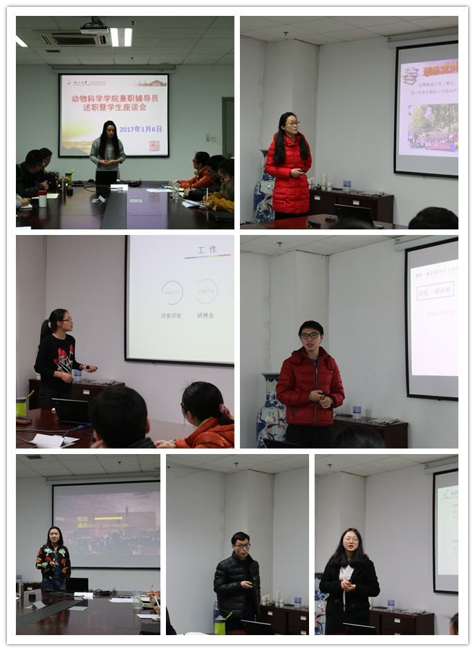 会上,研究生兼职辅导员张建家、耿世超、李思思、韩月,本科生兼职辅导员彭蕾、郑涵尹、卢磊浩、汪丽汇报了兼职辅导员工作情况、存在的问题及原因,以及下一步工作思路和措施。叶艇点评时指出:加强兼职辅导员建设,是学院工作深入群众的一个重要举措。学生兼职辅导员是辅导员队伍的重要组成部分,学生兼职辅导员述职是强化队伍建设的重要考核指标。学生与辅导员身份的两重性,决定了其角色定位的具体内容。