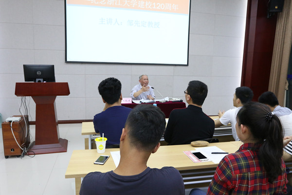 5月12日,恰逢细雨,春风化人,就在这微润的氤氲中,浙江大学关工委顾问、求是宣讲团团长,《我心中的华家池》作者,知名教授邹先定先生受邀来到学院,为师生进行了一场主题为《华家池历史文化探寻——纪念浙江大学建校120周年》的报告。学院党委副书记叶艇,团委书记陈卫、机关各科室老师以及诸多同学济济一堂,听取了报告。