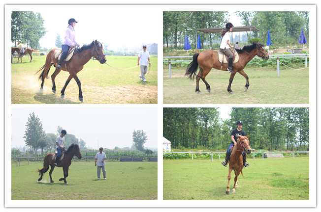 骏一路马术俱乐部位于双浦镇五丰岛。俱乐部早早地拉出了横幅欢迎同学们的到来,让同学们受宠若惊。马术俱乐部的刘总带领我们进入马场,详细介绍了马场马匹的品种、特性,并和马术教练一起帮助大家穿上了骑马必备的行头。接着,刘总从上马、骑马、下马三个方面介绍了骑马的姿势和要领,开始实战教学指导。他一边注意保护同学们的安全,一边不厌其烦地叮嘱着骑马的姿势,同时尽可能为大家做示范。在刘总与马术教练的悉心指导下,协会成员都顺利地完成了自己的马术初体验。