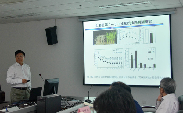 (图为生物种业和绿色生态生产技术体系首席专家张国平教授汇报项目进展)