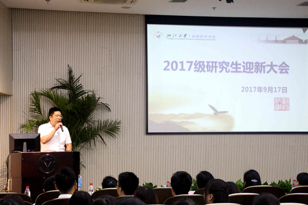 9月17日上午,学院在一楼报告厅举行2017级研究生迎新大会。学院院长汪以真、党委书记楼建悦,副院长李肖梁、党委副书记叶艇,研究生新生班级德育导师张金枝、刘红云、谭勋、杜华华、黄凌霞、廖敏,研究生科科长朱华,研究生辅导员江丽军、本科生辅导员陈卫以及150余名研究生新生参加了大会。大会由叶艇主持。