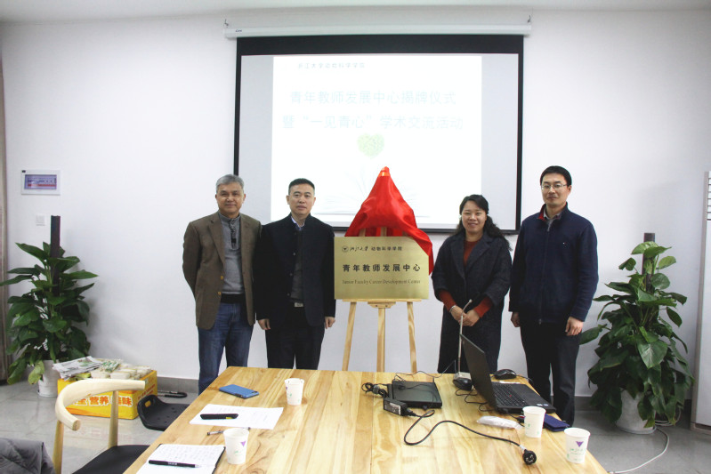 2018年3月16日中午,学院青年教师发展中心揭牌仪式暨“一见青心”学术交流活动在二楼“牧心坊”举行。学院院长汪以真,党委书记楼建悦,动医系方维焕教授应邀出席仪式,青年教师代表20余人参加了揭牌仪式。仪式由青年教师发展中心主任单体中主持。