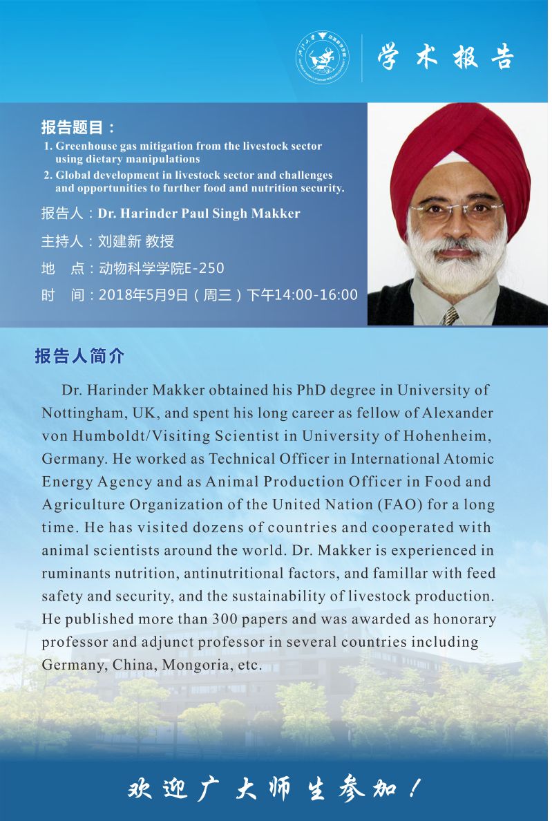 Dr. Harinder Paul Singh Makker学术报告