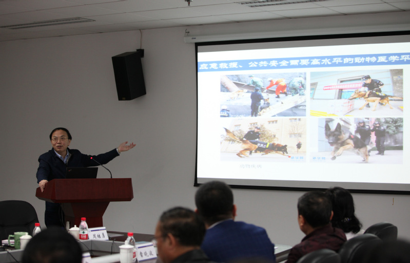 论证会专家组组长为扬州大学兽医学院刘秀梵院士,副组长为军事科学院军事医学研究院金宁一院士。刘秀梵院士主持了建设方案论证会。动物医学系主任周继勇教授汇报了动物医学中心的建设方案。
