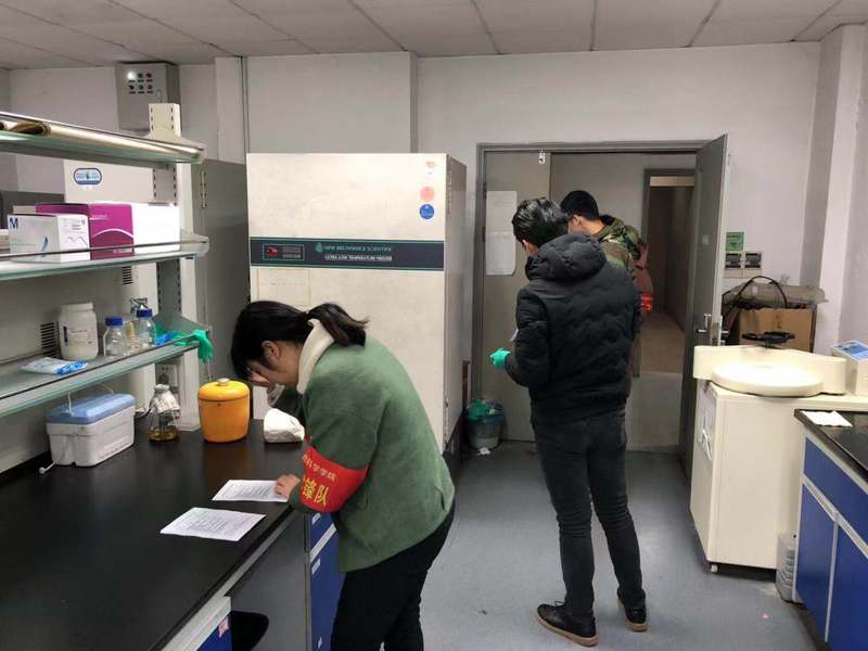 13名学生党员分为4组,分别对E座、C座和D座我院的实验室进行细致的检查,重点检查了环境卫生、实验化学品储存、实验安全防护等,认真填写检查反馈表、拍下照片记录,检查中发现了发现部分实验室存在安全隐患52处,并且对相应的实验室提出整改意见。