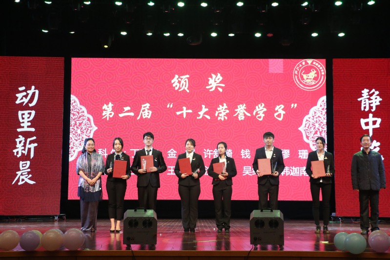 第二篇章结束,进行了第二届“十大荣誉学子”颁奖,这是我院毕业生的最高荣誉,今年,又有十位在各方面表现优异的毕业生获得了此项殊荣。他们也代表全体毕业生向学院赠送了书法作品,楼建悦书记代表学院接收赠礼。