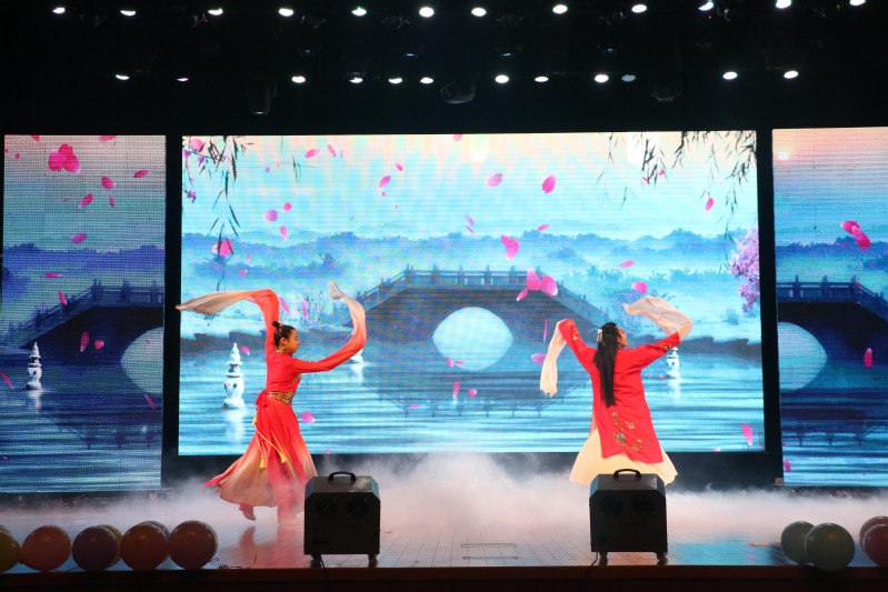 晚会临近结束,学院领导和全体机关老师为大家带来美轮美奂的《彩云追月》旗袍秀,撑着油纸伞在彩云中缓缓走来,惊艳全场!