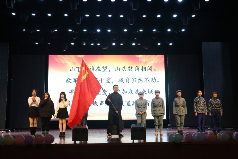第一篇章,MOC清唱团通过无伴奏人声合唱,将人体化作乐器,演绎出风味截然不同的《Joy to the world》;情景短剧《井冈星火》带我们重回那段激情燃烧的岁月;亦心民韵舞社带来的舞蹈《绒花》浪漫唯美,勾起了每一个人的青春回忆;18级动医专业研究生查帆同学的一曲《暧昧》长出了年轻时感情的纯真和懵懂;动医1701的魔术表演让大家见证了“奇迹”的时刻。