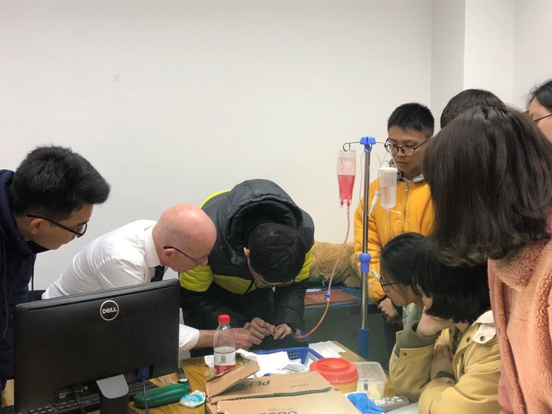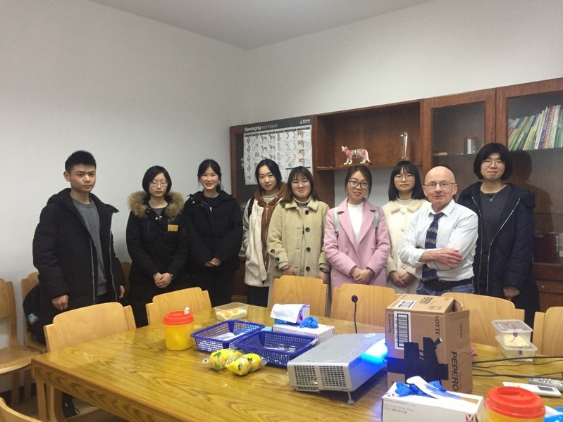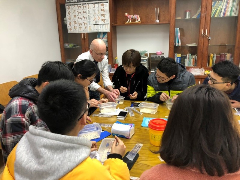 经过学院的积极沟通,动物医学系今年再次邀请到英国小动物外科专家Jason Kimm于2019年3月4日-8日来我院进行了交流培训。Jason Kimm目前在英国Grimsby市的蓝十字动物医院慈善机构从事临床诊疗工作,有近四十年的临床经验,对动物医学专业的临床专业技能培训十分热心,专程从英国带来各种小动物临床模型。此次参加培训的学生主要来自于三年级,共有46名学生参与了此次培训活动,培训共分五天进行。经过此次培训,大家对国外小动物临床实践教学方面有了全新的了解,也进一步丰富自身的临床实践操作技能,特别是对Jason Kimm的热情、细心和表现出来的专业素养感到由衷的敬佩。