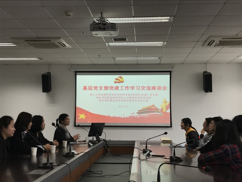 3月16日下午,丽水学院职业技术学院学生党员在该院辅导员敬芳老师的带领下到我院走访交流学生党建工作,学院党总支委员刘康宁老师及饲料所研究生第一党支部全体党员在E250会议室参加了座谈会,会议由刘康宁主持。