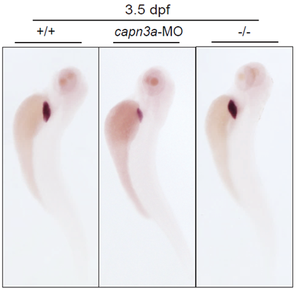 2015年,彭金荣实验室发现,一个影响斑马鱼肝脏发育的钙调蛋白酶(Capn3a),用不同方法敲低这一基因时会出现小肝脏表型,而敲除遗传突变体肝脏发育正常。“敲除突变体长出正常的肝脏,说明可能是遗传补偿效应在起作用。”马志鹏推测说。