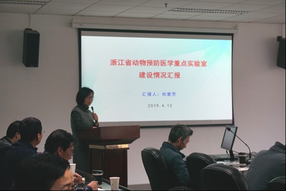 重点实验室主任杜爱芳作了实验室建设情况工作汇报,从重点实验室基本情况、阶段业绩回顾、标志性成果展示、存在问题和发展方向四个方面进行介绍,展示了实验室近年来在运行管理、科研成果、团队建设、人才培养、研究亮点等方面的工作进展,并提出了紧扣国家和行业发现需求的未来发展计划。实验室以动物流行病防治、动物微生物与免疫、动物源性食品生物安全为主要研究方向,根据自身特色与优势,服务于我省畜牧产业和公共卫生事业,取得了一定的成果。