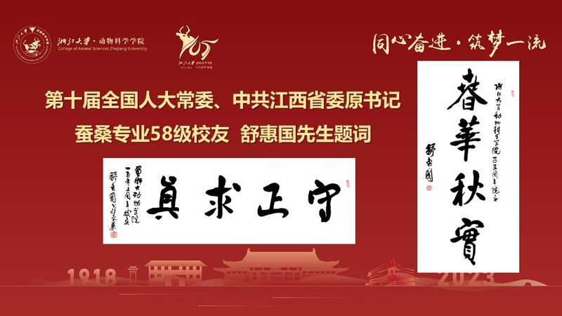 大会收到了来自第十届全国人大常委、中共江西省委原书记、蚕桑58级校友舒惠国的题词祝福。