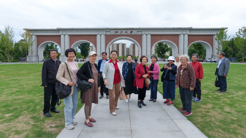 23日,校友们重回华家池畔,看望了原蚕桑系主任冯家新老先生,并再次走进蚕桑馆、西大楼、和平岛、奔马广场、红五楼、大食堂等地重温昔日求学场景,追忆当年生活点滴,欣赏华家池湖光美色,感叹五十载岁月如梭。