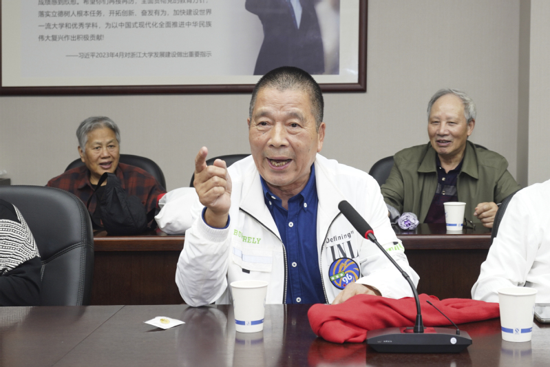 畜牧兽医74级班主任兼支部书记屠友金老师与校友们重温大学学习和生活,一起分享幸福的退休生活。盛桂龙代表校友们分享了纪念入学50周年返校聚会的幸福和喜悦,向母院表达深深的感恩之心,对母校和母院所取得的辉煌成就感到无比自豪,并由衷感谢母校母院对校友们的高度重视和深切关怀,祝愿母院取得更加辉煌成就。