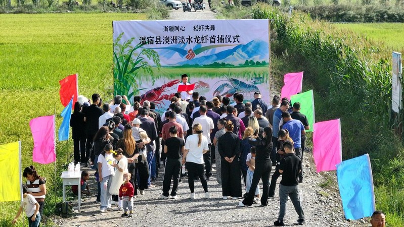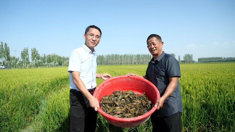 澳洲淡水龙虾作为世界名贵经济虾种之一,具有肉质鲜美、营养丰富、出肉率高的特点,市场前景广阔。援疆团队充分利用其生长特性,并结合新疆温宿县的水土光热资源条件,构建了“稻虾共生、生态循环”的绿色种养系统,实现了“一水两用、一田双收”。该模式预计每亩可收获生态稻谷500公斤,亩均产值有望突破4000元,经济效益较传统单一水稻种植提升3–4倍。