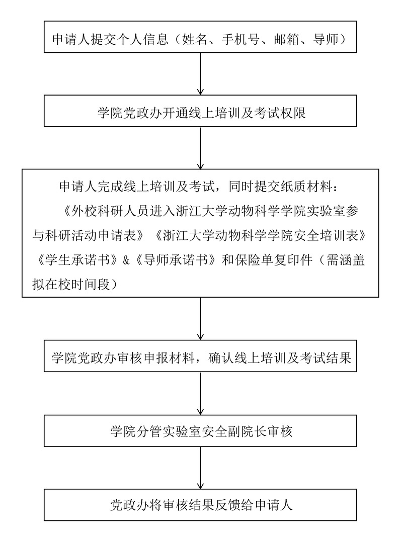 为加强对校外科研人员进校开展实验室活动的安全管理,切实保障人身安全和财产安全,将实验室安全准入要求落到实处,特制定此流程。