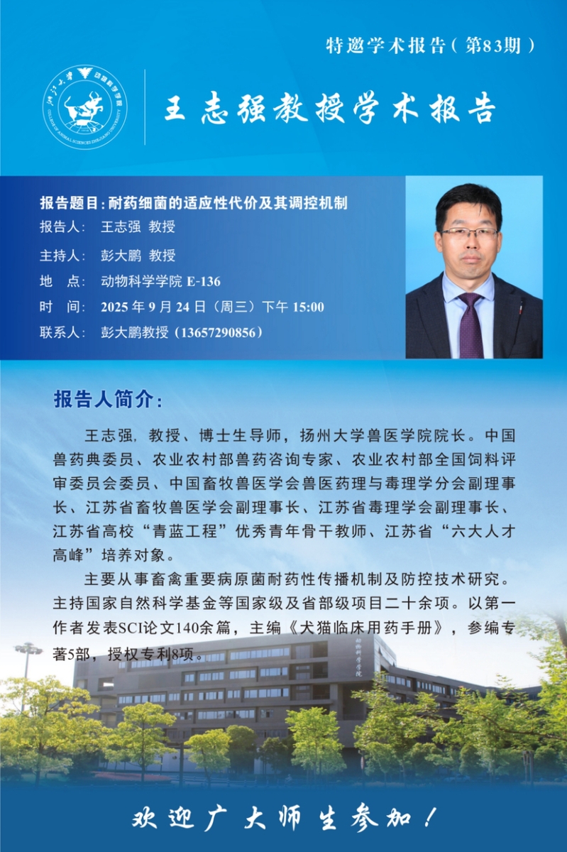 动物科学学院特邀学术报告会-王志强教授学术报告