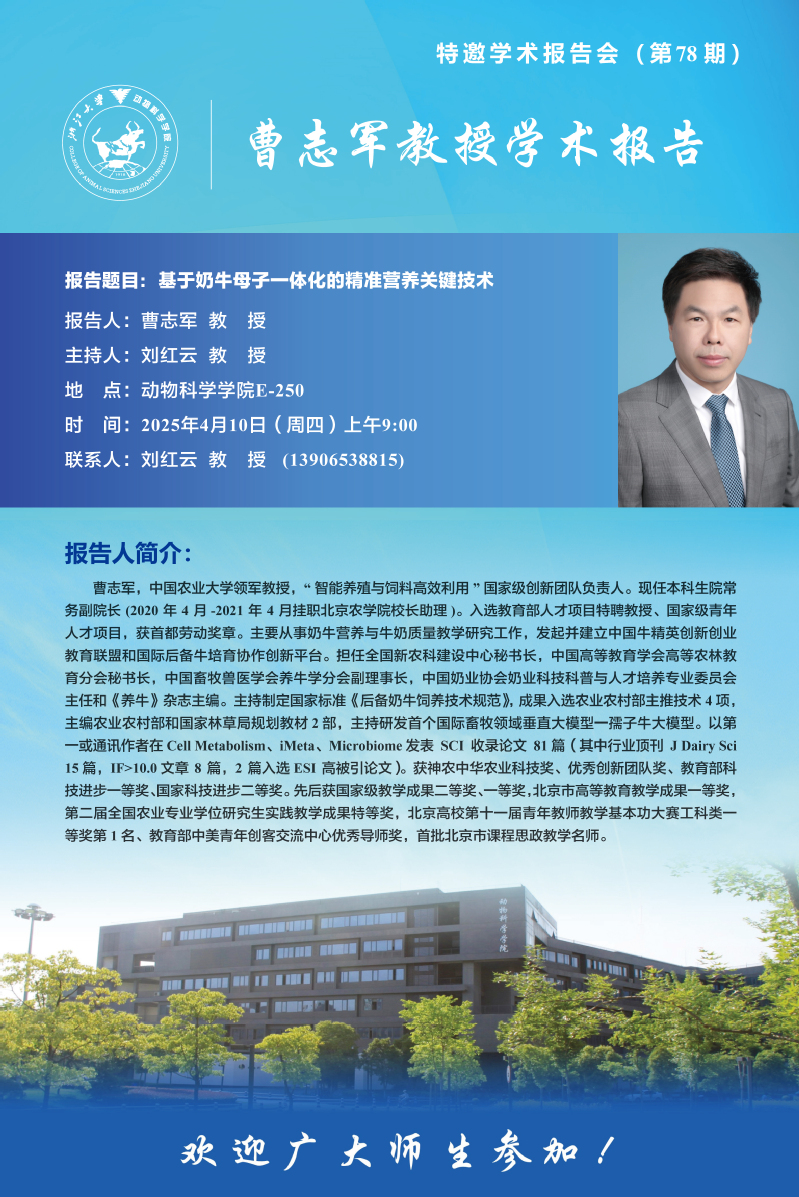 动物科学学院特邀学术报告会-曹志军教授学术报告