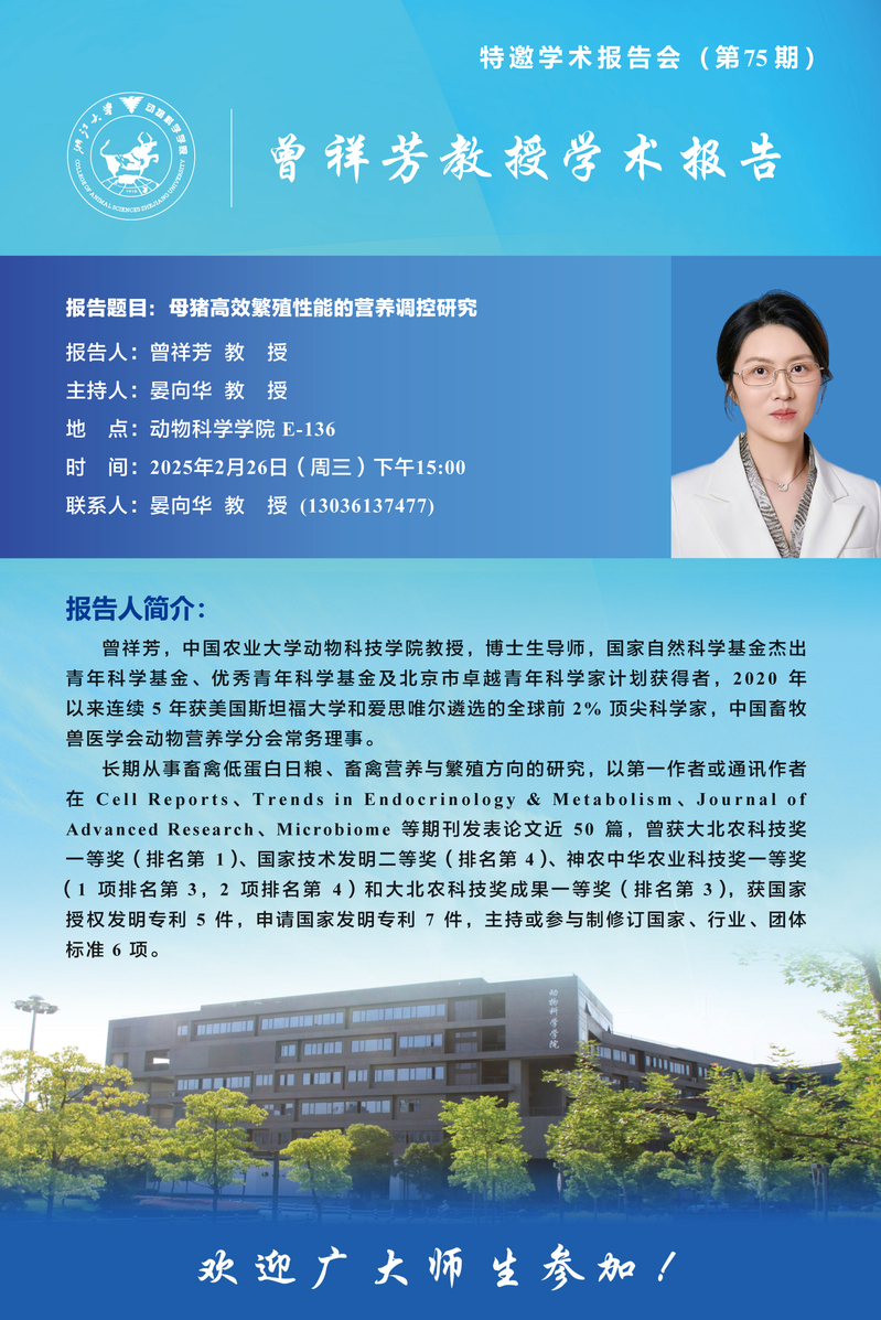 动物科学学院特邀学术报告会-曾祥芳教授学术报告
