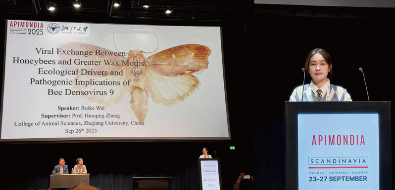 会议期间,我院师生围绕天然活性物质的功能发现与健康应用、蜜蜂与伴生昆虫的病毒互作机制、环境变化下的授粉稳定性、以及蜜蜂病毒防控的天然化合物策略等作了学术报告,系统展示了我院蜂学团队在蜂产品利用、蜜蜂健康与生态传粉等方面的最新研究进展。参会师生积极与来自德国、美国及英国等地区的专家学者开展交流讨论,得到了广泛关注。