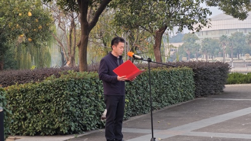12月8日清晨,学院在紫金港校区基础图书馆升旗台隆重举行升旗仪式暨国防教育主题活动。学院领导、教工党支部书记、新入职教师代表、2025年新发展党员以及学生代表80余人共同参与了此次活动。活动由学院党委副书记任思丹主持。