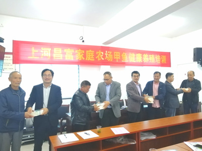 在此基础上,团队构建了“科技特派员-养殖技术人员-农民骨干”三级技术传播、推广与服务体系,形成了全方位、多层次的帮扶网络。在2021年“才聚松阳”人才科技周活动中,刘广绪、徐海圣等团队成员专程前往上河村开展甲鱼健康养殖培训,解读相关政策、传授核心技术,还向30多户养殖户赠送了徐海圣老师撰写的《中华鳖高效健康养殖技术》一书。一本本实用的技术手册,一次次耐心的现场指导,让“稻鳖共作”模式在松阳落地生根、开花结果。