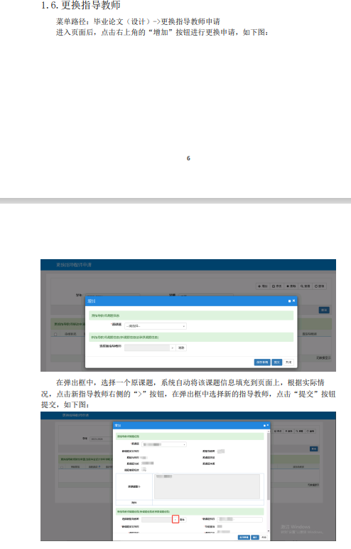 本科教务管理系统ZDBK——毕业论文(设计)——更换指导教师申请——右上角“增加”。如下图: