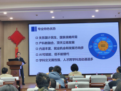 郑火青副院长为同学们带来了题为“本科人才培养特色与优势”的报告,系统讲解了我院专业设置、支撑条件、研究领域、学科交叉等方面的内容。