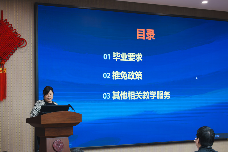 接着,本科生教务科科长王清华老师为同学们介绍了学院保研政策等教务相关工作,为大家解读了院内推免细则,包括推免的基本要求、遴选办法和推免种类,解答了保研的常见问题。