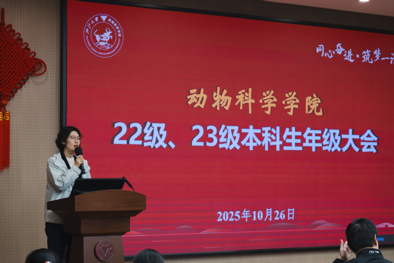 最后,学院党委书记丁立仲老师结合近五年本科生就业与深造数据,做总结讲话。他强调,动科院学子一定要尽早明确个人目标,并为之努力,行动是关键。丁书记以“目标导向”为核心,呼吁同学们深入思考自身发展方向。