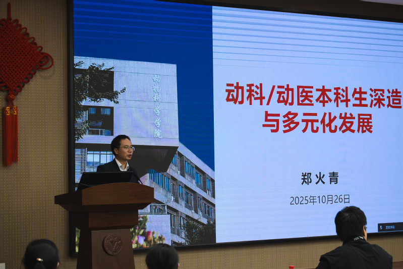 首先,郑火青老师以“动科/动医本科生深造与多元化发展”为题做专题报告。郑老师通过案例和就业数据,强调了学历的重要性及深造的必要性。郑老师指出,动科学子可以多元化探索规划方向,增加“上岸”机会与质量。在报告的最后,郑老师寄语同学们“有信心,早规划,早行动,真行动”十二字建议,对同学们寄予殷切期望。
